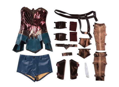 Start dressing like Diana Prince, aka Wonder Woman by wearing: a Red Faux Leather Corset, Blue with White Stars Spandex Shorts, Gold Mirror Belt, Wonder Woman Cuffs, and Wonder Woman Logo Gold Foil Sticker. Slip on a pair of Wonder Woman Boots along with a Wonder Woman Wig, Gold Wonder Woman Tiara, and a pair of Red Shell Bead Stud Earrings. With the Lasso of Truth, you'll be ready to take on the worst super villains with its Small Twist Cord.