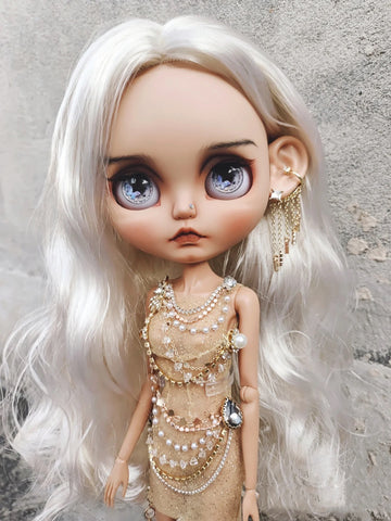 This kind of model body is also very suitable for Blythe DOLL. I am used to seeing cute Blythe DOLL STYLE, and I prefer sexy, mature and cold Blythe DOLL STYLE. From makeup to clothing to accessories, it took a lot of time and effort, and the FIRST DRESS clothes were redone several times before they were satisfied, and I felt uncomfortable if they were not satisfied. Various accessories have been carefully selected for a long time, especially the drawstring. thanks~