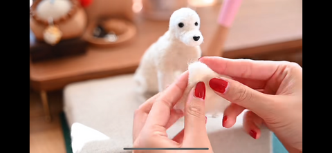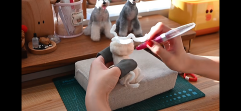 Step 4:Move on to a higher felting needle (40) when this is finished to gradually feel a denser body. Start shaping your animal by layering it correctly and making denser areas where necessary. Your project may become too dense if you switch to a felting needle with a diameter of 42 or higher.