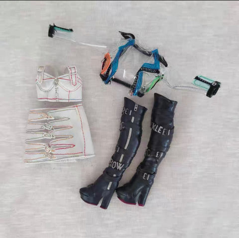 Shoes: The dolls often wear shoes that are inspired by classic monster movies. For example, Clawdeen Wolf often wears platform boots with fur trim, while Spectra Vondergeist wears shoes with chains and studs.